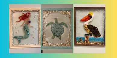 From the Treasure Coast of Florida learn to create popular beach inspired resin wall art such as mermaids, sea turtles, octopus, ocean waves, lighthouses, fairy's, unicorns, pelicans, sand pipers and more.